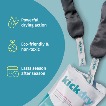 KickDry's clay-based formula absorbs moisture, starving odor-causing bacteria and leaving your shoes smelling fresh for the long haul.